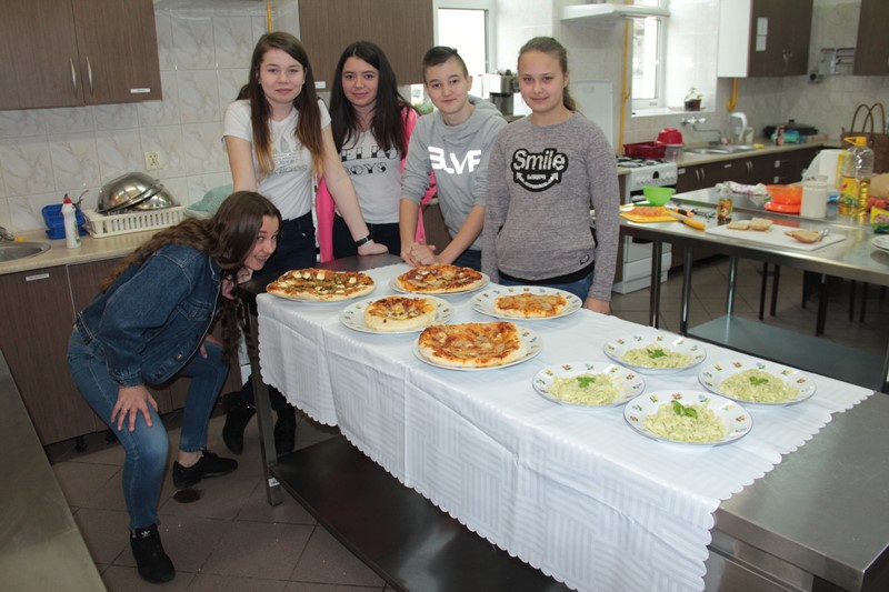 Czwartek minął pod hasłem „Dnia Kulinarno-Sportowego”. Tego dnia w naszej szkole trwało wielkie gotowanie w trakcie którego uczniowie przygotowali znakomite dania kuchni włoskiej (pizzę, pastę z zielonym pesto oraz bruschettę). W trakcie zajęć mogli oni spróbować swoich sił w kuchni oraz poznać naszą pracownię gastronomiczną. Po pracy czas na przyjemności – młodzież mogła skorzystać ze sprzętu sportowego, którym dysponujemy i spalić kalorie w trakcie ćwiczeń na trampolinach.